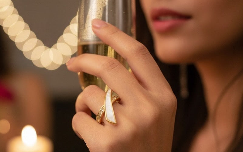 • Lustrous Mother-of-Pearl Inlay: One band is inlaid with a smooth, iridescent Mother-of-Pearl segment, catching the light with soft, natural glow and adding a touch of sophisticated shimmer.